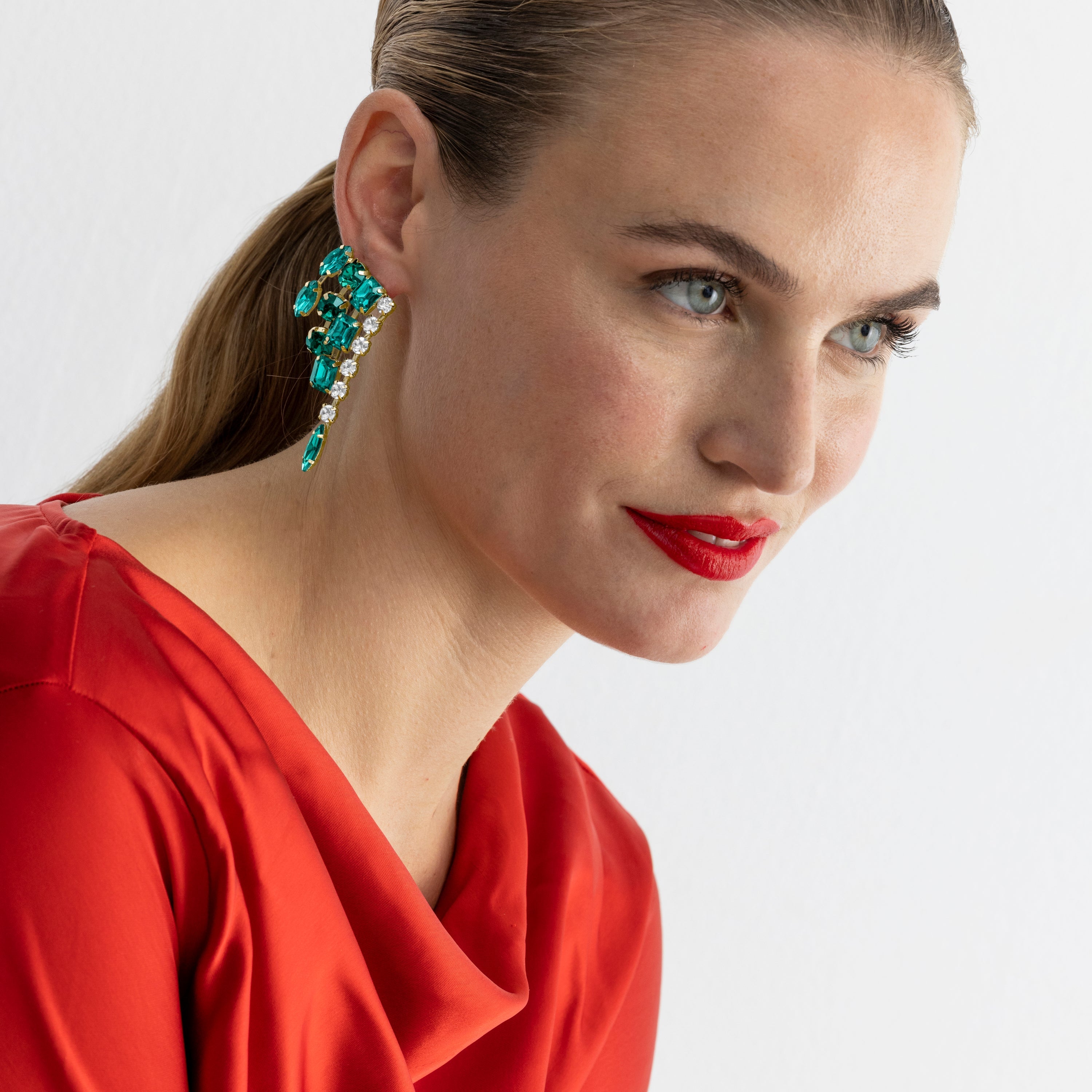 Ordfi earrings with multicolored crystals in an 18k gold finish. Africa is the perfect line for women with personality, who aren't afraid to take risks and wear pieces with their own unique character.